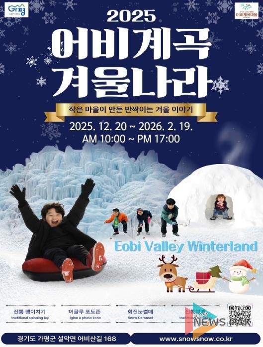 뉴스팍 배상미 기자 | 가평군은 이달 20일부터 시작하는 ‘2025 어비계곡 겨울나라’ 축제와 연계한 겨울테마여행 철도관광상품을 출시했다고 11일 밝혔다. 군은 코레일관광개발㈜과의 업무협약을 기반으로 아이티엑스(ITX)-청춘 열차를 활용한 테마형 관광상품을 지난 4월부터 추진해 왔다.