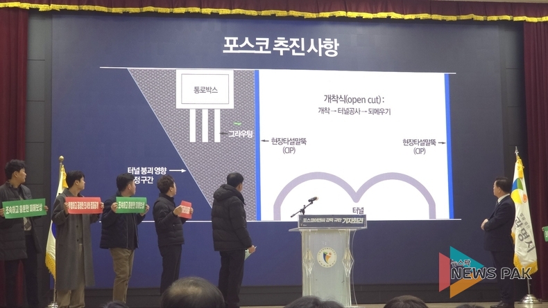 가장 큰 쟁점은 지난 4월 신안산선 학온역(가칭) 인근 공사 현장에서 발생한 지반 침하 사고의 후속 조치다. 사고 여파로 도로 하부의 ‘통로박스(입체교차 시설)’와 ‘수로암거(배수로)’ 등 기반 시설이 파손됐으나, 시공사인 포스코이앤씨 측은 ‘보수·보강’만으로 충분하다는 입장을 고수하고 있다.