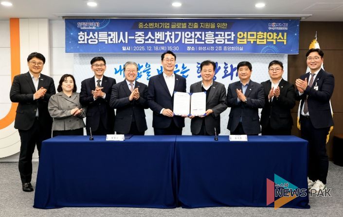뉴스팍 류은정 기자 | 화성특례시가 지난 18일 중소벤처기업진흥공단과 관내 중소기업의 글로벌 진출 지원을 위한 ‘수출물류지원사업 업무협약’을 체결했다.