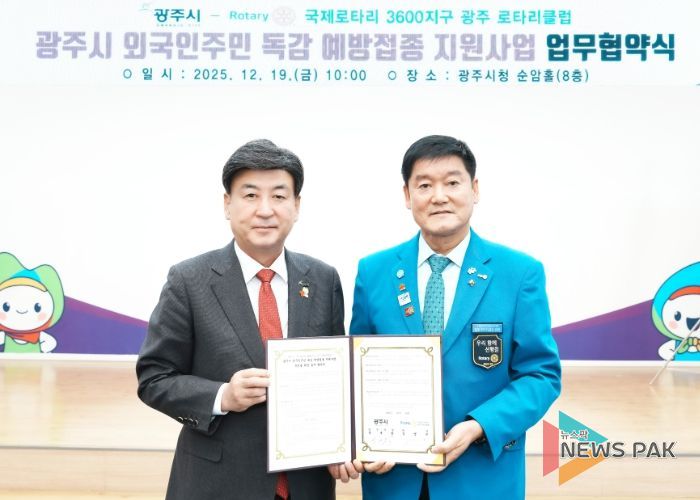 뉴스팍 이화형 기자 | 광주시와 국제로타리 3600지구 광주 로타리클럽은 19일 외국인 주민의 건강 보호와 독감 예방을 위한 ‘외국인 주민 독감 예방접종 지원사업’ 추진에 관한 업무협약(MOU)을 체결했다.