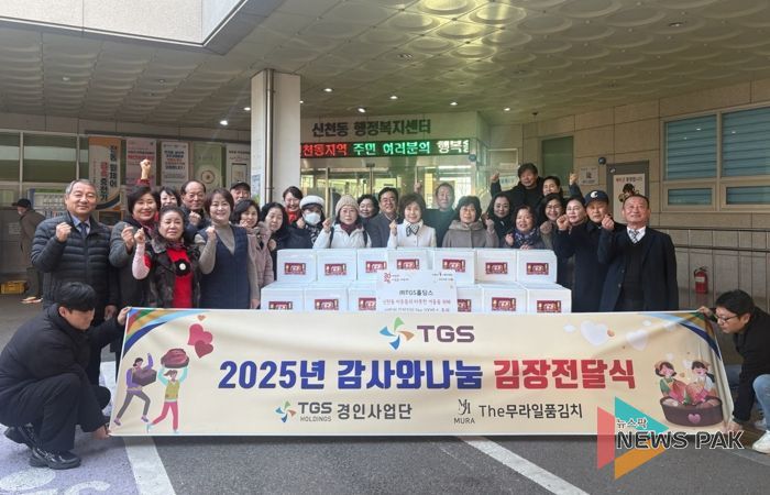 뉴스팍 배상미 기자 | ㈜TGS홀딩스 경인사업단은 지난 12월 19일 신천동 행정복지센터에 김장 김치 500kg을 전달하며 연말을 맞아 지역사회 나눔에 동참했다.