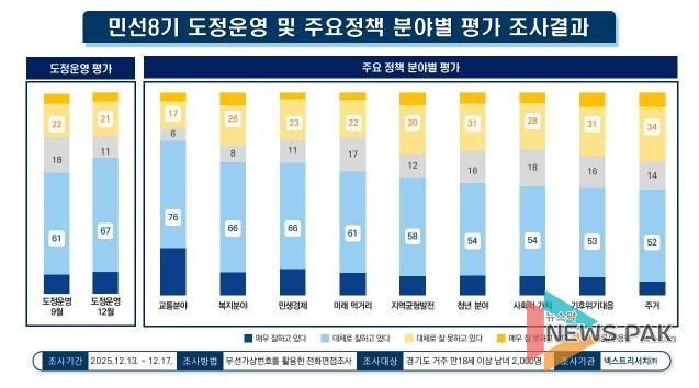 뉴스팍 배상미 기자 | 민선8기 경기도정에 대한 여론조사 결과 도정 운영에 대한 도민 평가가 지난 9월 조사보다 상승한 것으로 나타났다.