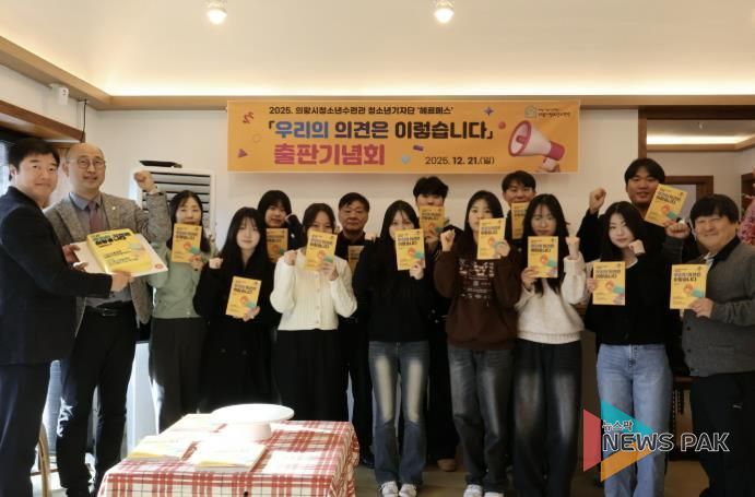뉴스팍 배상미 기자 | 의왕시청소년재단 산하 의왕시청소년수련관에서 운영하는 청소년기자단 ‘헤르메스’가 12월 21일, 한 해 동안 작성한 기사를 담은 도서 '우리의 의견은 이렇습니다'의 출판 기념 행사를 성황리에 마무리했다.