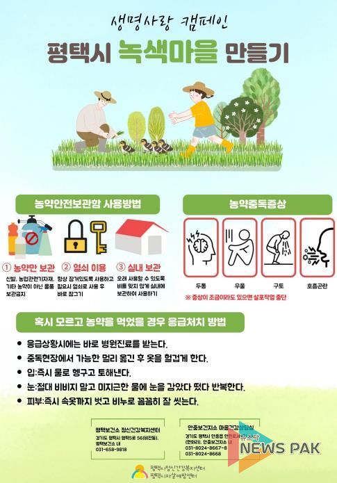 뉴스팍 이소율 기자 | 평택시 안중보건지소에서는 지난 15일부터 18일까지 농촌지역인 현덕면 덕목1리 등 5개소를 대상으로 농약 음독사고 예방을 위한 생명사랑 캠페인을 진행했다고 밝혔다.
