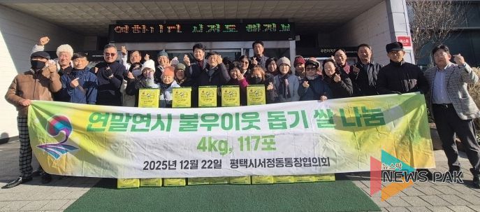 뉴스팍 이소율 기자 | 평택시 서정동 통장협의회는 지난 22일 연말연시를 맞아 어려운 이웃과 취약계층에 대한 사랑 나눔을 실천하고자 연말연시 불우이웃 돕기 쌀 나눔 행사를 진행했다.