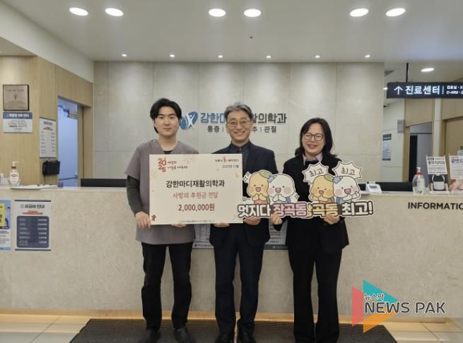 뉴스팍 배상미 기자 | 시흥시 장곡동에 연말을 맞아 따뜻한 나눔의 손길이 이어지고 있는 가운데, 강한마디재활의학과의원이 취약계층 지원을 위해 지난 12월 23일 지역화폐 ‘시루’ 200만 원을 전달하며 이웃사랑을 실천했다.