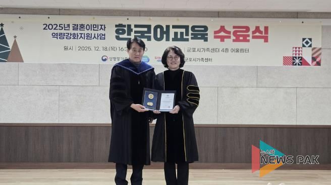 뉴스팍 배상미 기자 | 군포시 가족센터는 지난 12월 18일 가족센터 어울림터에서 결혼이민자와 중도입국자녀 60명을 대상으로 한국어교육 수료식을 개최했다.