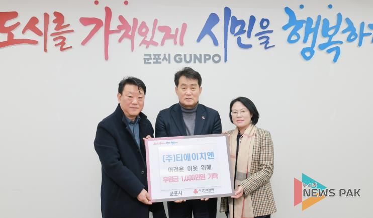 뉴스팍 배상미 기자 | 군포시는 지난 24일 대구에 본사를 둔 중견기업인 ㈜티에이치엔으로부터 후원금 1,000만원을 기탁받았다고 밝혔다.