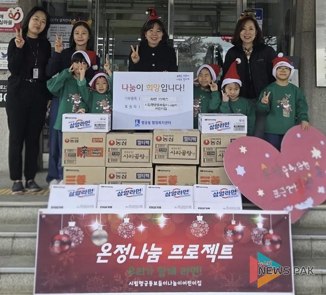 뉴스팍 배상미 기자 | 시립행궁동보듬이나눔이어린이집은 12월 24일 크리스마스이브, 수원시 팔달구 행궁동에 라면 15박스를 기부하며 지역사회에 따뜻한 나눔을 전했다.