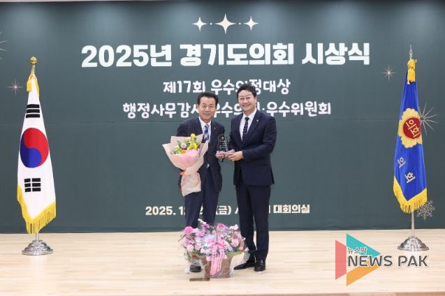 뉴스팍 배상미 기자 | 경기도의회 김성수 의원(더불어민주당, 안양1)이 26일 경기도의회 대회의실에서 열린 대한민국시도의회의장협의회 주관 ‘제17회 우수의정대상’ 시상식에서 우수의정대상을 수상하며 임기 내내 쉼 없이 펼쳐온 도민 중심의 열정적인 의정활동 공로를 인정받았다.