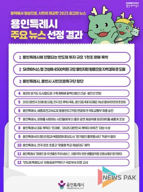뉴스팍 배상미 기자 | 2025년 용인특례시를 빛낸 최고의 뉴스로 '반도체 투자규모 1000조 원에 육박'이 뽑혔다.