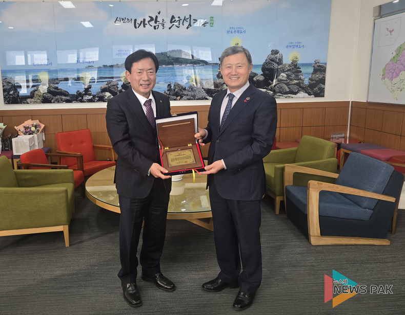 뉴스팍 배상미 기자 | 수원농업협동조합(조합장 염규종)은 29일 제주시청(시장 김완근)으로부터 제주고향사랑기부제 활성화에 기여한 공로를 인정받아 염규종 조합장을 제주도 명예도민으로 선정하고 제주시청에서 명예도민증을 전달받았다고 밝혔다.