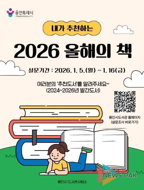 뉴스팍 배상미 기자 | 용인특례시는 5일부터 ‘2026 올해의 책’ 후보 도서를 시민들로부터 추천받는다고 2일 밝혔다.