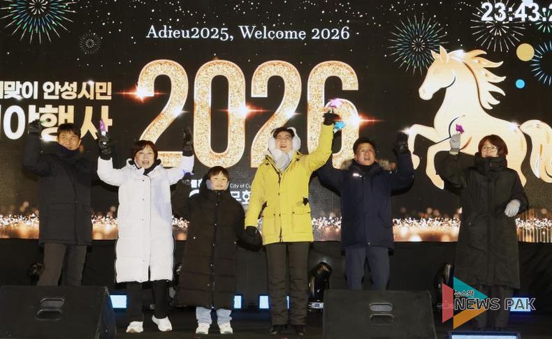 뉴스팍 배상미 기자 | 안성시가 후원하고 안성문화원이 주관한 '2026년 새해맞이 안성시민 제야행사'가 12월 31일 밤 안성맞춤아트홀 야외무대에서 시민들의 큰 호응 속에 안전하고 차분하게 마무리됐다.