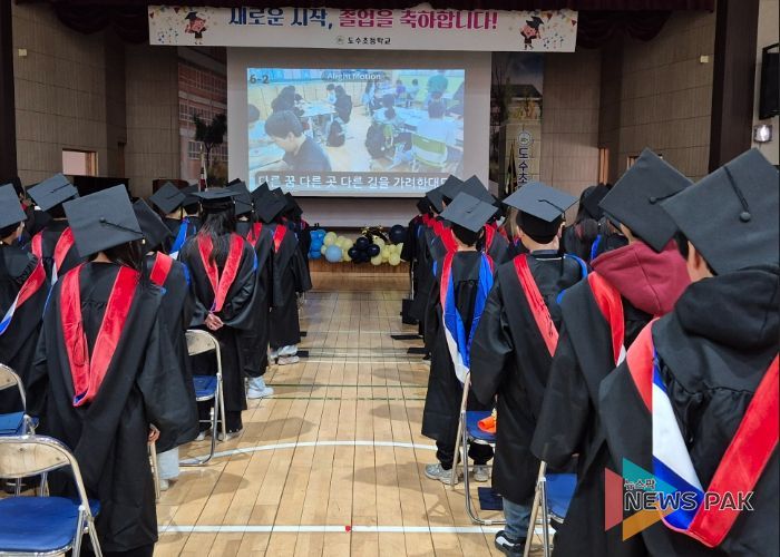 뉴스팍 류은정 기자 | 도수초등학교는 12월 31일 오전 10시, 온누리관에서 졸업생 88명을 비롯해 교직원, 재학생, 학부모, 총동문회, 학교운영위원회, 학부모회 등 학교 공동체가 함께한 가운데 제88회 졸업식을 개최했다.