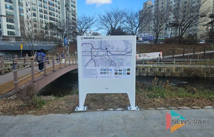 뉴스팍 배상미 기자 | 용인특례시 수지구는 시민들이 하천 산책로와 자전거 도로를 편리하게 이용할 수 있도록 탄천·성복천·정평천 일원에 하천 안내판 설치를 완료했다고 4일 밝혔다.
