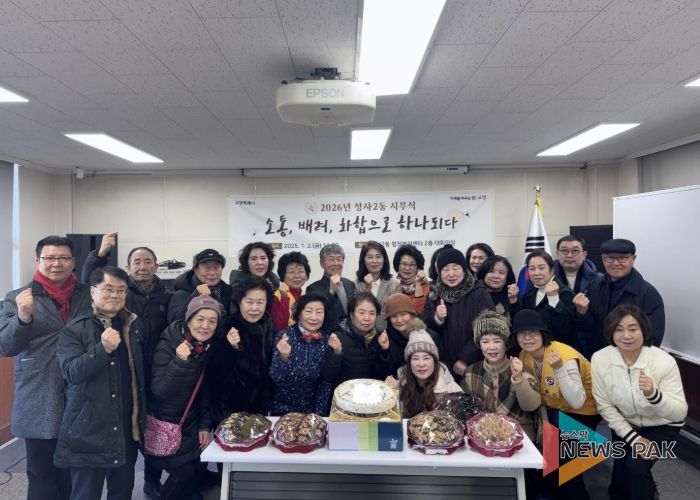 뉴스팍 배상미 기자 | 고양특례시 덕양구 성사2동 주민자치회는 2026년 병오년 새해를 맞아 지난 2일, 행정복지센터 대회의실에서 ‘소통, 배려, 화합으로 하나 되다.’를 표어를 내걸고 시무식을 개최하며 힘찬 출발을 알렸다.