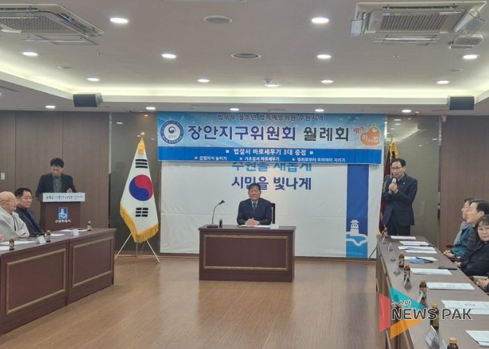 뉴스팍 배상미 기자 | 수원시 장안구는 지난 5일, 법무부 청소년 범죄예방위원 장안지구위원회 주관으로 장안구청 상황실에서 월례회의를 개최했다고 밝혔다.