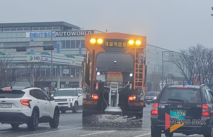 뉴스팍 배상미 기자 | 수원시가 10일 선제적으로 제설제를 살포해 블랙아이스(도로결빙)에 대비했다.