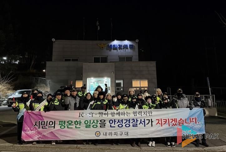 순찰은 자율방범대원, 대덕면 직원, 내리지구대 직원 등 30여 명이 참여해 주요 상가 밀집지역 등 범죄 취약지역을 중심으로 도보 순찰을 실시하고 방범 취약 요소를 점검했다.