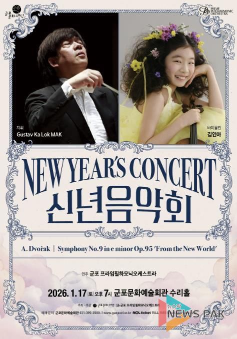 뉴스팍 배상미 기자 | 군포문화예술회관은 2026년 새해를 맞아 군포 프라임필하모닉오케스트라와 공동기획으로 '2026 신년음악회'를 오는 1월 17일 오후 7시, 수리홀에서 개최한다.