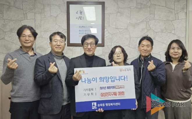 뉴스팍 배상미 기자 | 수원시 장안구 송죽동은 지난 15일 삼성전자 구매OB회와 함께하는 ‘청소년 용돈지원사업’ 후원금 전달식을 개최했다고 밝혔다.
