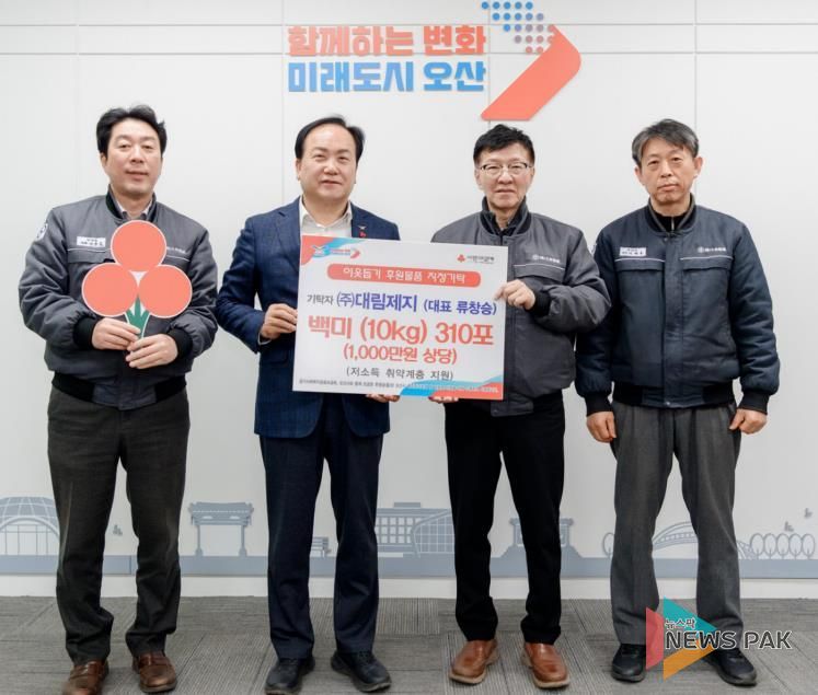 한편, 누읍동에 소재한 ㈜대림제지는 1984년 설립된 골판지용 원지 공급 기업으로, 오산시에 지난 13년간 성금과 백미 기탁 등 꾸준한 후원 활동을 이어오며 지역사회 나눔 문화 확산에 기여하고 있다.