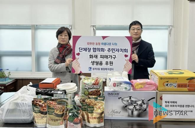 송근숙 정자3동장은 “예기치 못한 화재로 어려움을 겪는 이웃들을 위해 지역사회가 한마음으로 힘을 모을 수 있어 매우 뜻깊다”며 “앞으로도 위기 상황 발생 시 신속한 지원과 촘촘한 복지 연계를 통해 주민 보호에 최선을 다하겠다”고 말했다.