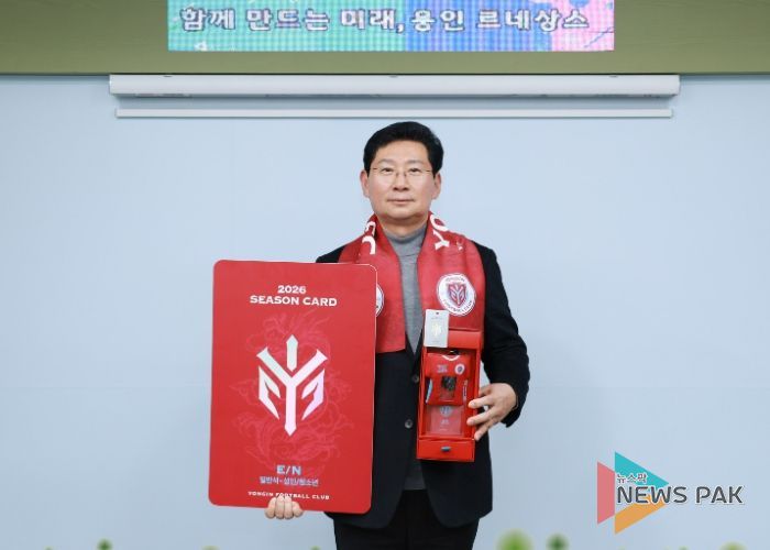 뉴스팍 배상미 기자 | 이상일 용인특례시장은 21일 2026 K리그2에 참가하는 (재)용인시시민프로축구단의 시즌권을 배우자 김미영 여사와 함께 각각 구매하며 110만 용인시민과 함께 구단을 응원하겠다는 뜻을 밝혔다.