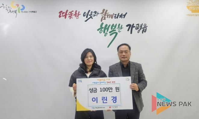 뉴스팍 배상미 기자 | 가평군 가평읍 주민 이린경 씨는 지난 20일 가평읍 행정복지센터를 방문해 취약계층 이웃돕기 성금 100만 원을 기탁했다.