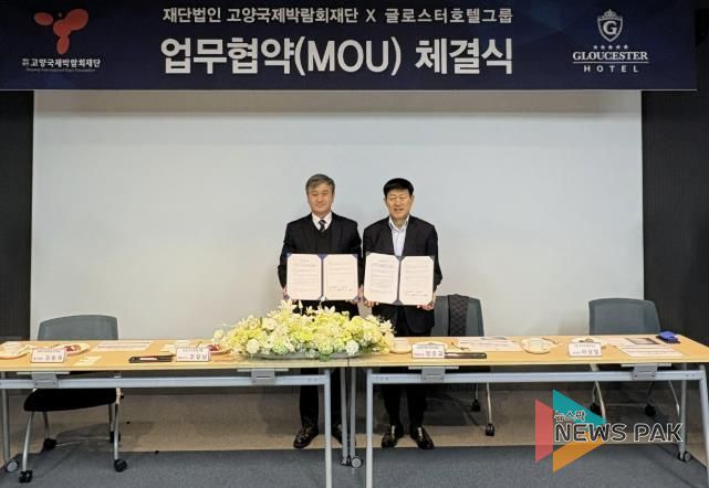 뉴스팍 배상미 기자 | (재)고양국제박람회재단과 글로스터호텔그룹이 지난 22일 글로스터호텔 킨텍스에서 고양시 MICE 산업 활성화 및 상호 협력체계 구축을 위한 업무협약(MOU)을 체결했다.