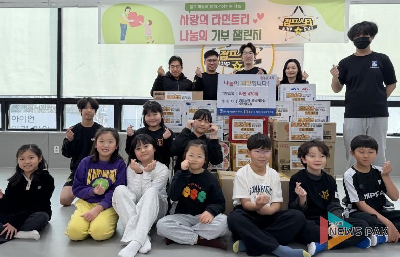 뉴스팍 배상미 기자 | 수원시 영통구 망포1동은 지난 27일, 점프스타 줄넘기클럽 수원망포점이 원생들이 자발적으로 모은 라면 470개를 어려운 이웃을 위해 후원했다고 밝혔다.