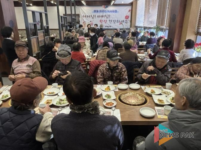 뉴스팍 배상미 기자 | 지난 28일, 호매실동에 위치한 훈장골 수원점에서 지역 어르신 50여 명을 초청해 정성 어린 오찬을 대접했다.