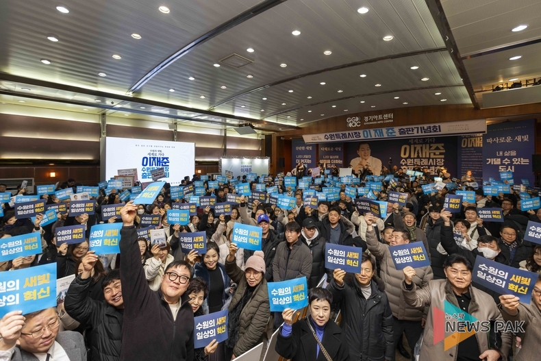 뉴스팍 배상미 기자 | 이재준 수원특례시장이 자신의 저서 『수원의 새빛, 세계로 가다』 출판기념회를 통해 사실상의 ‘수원 대전환’ 선포식을 가졌다. 지난 1일 경기아트센터 도움관에서 열린 이번 행사는 영하의 추위가 무색할 만큼 뜨거운 열기 속에 5,000여 명의 시민이 운집하며 성황리에 마무리됐다.