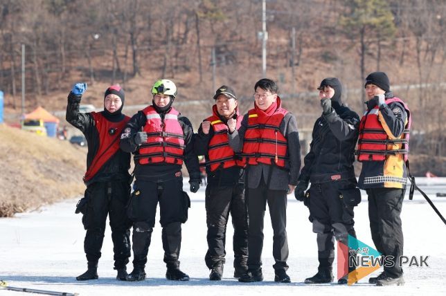 뉴스팍 배상미 기자 | 경기도의회 안전행정위원회 윤성근 부위원장(국민의힘, 평택4)은 지난 1월 27일 안성시 성은저수지에서 열린 동계 수난사고 대응 역량 강화 합동훈련 현장을 찾아 훈련 과정을 점검하고 구조대원들을 격려했다.