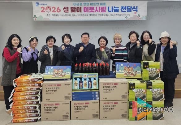 뉴스팍 배상미 기자 | 영통구 영통1동은 지난 3일 영통1동 단체장협의회가 설 명절을 앞두고 관내 저소득 이웃을 위한 ‘설 맞이 이웃사랑 나눔 전달식’을 진행했다고 밝혔다.
