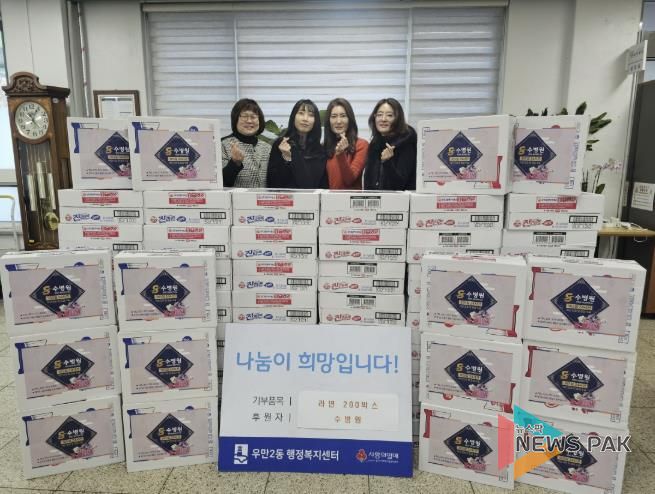 한편, 이날 기부된 라면 200박스는 우만2동 행정복지센터를 통해 홀몸 어르신, 저소득 가구 등 도움이 필요한 이웃들에게 전달될 예정이다.