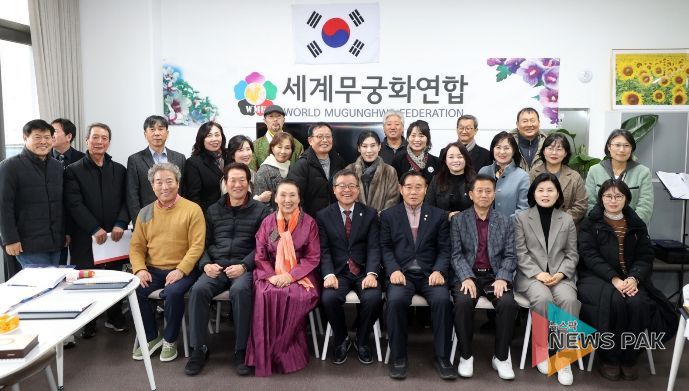 뉴스팍 배상미 기자 | 수원특례시의회 이재식 의장은 2월 4일, 세계무궁화연합 사무국에서 열린 세계무궁화연합(W-M-F) 제2회 정기총회에 참석해, 무궁화 보존과 문화 확산을 위한 시민 활동에 공감하고 연대해 온 데 대한 뜻으로 감사패를 받았다.