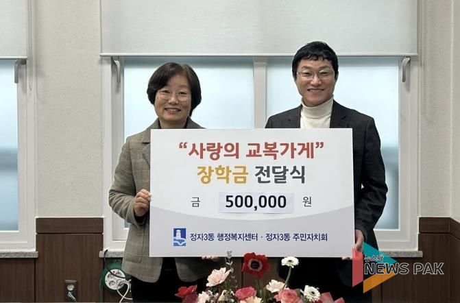 송근숙 정자3동장은 “매년 사랑의 교복가게를 통해 의미 있는 나눔을 실천해 주시는 주민자치회에 감사드린다”며 “기탁해 주신 장학금이 꼭 필요한 학생에게 잘 전달될 수 있도록 하겠다”고 말했다.