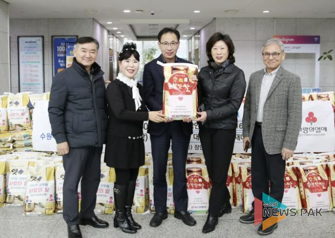 뉴스팍 배상미 기자 | 수원시 장안구에 위치한 예스식자재마트에서 지난 5일, 설 명절을 맞아 장안구에 백미 100포를 기부했다.