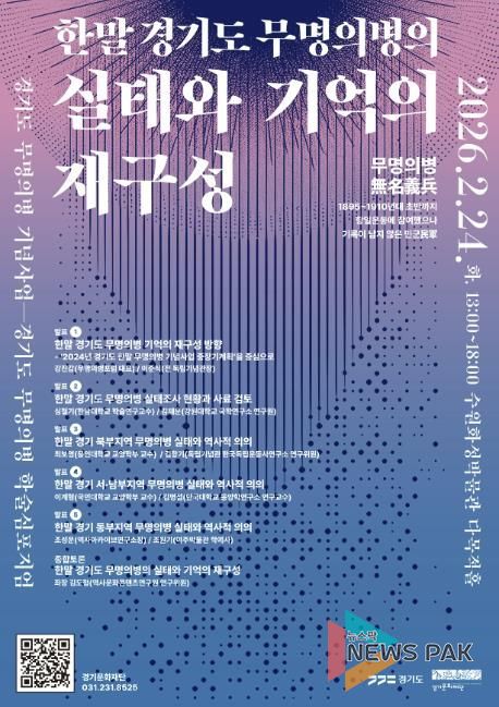 뉴스팍 배상미 기자 | 경기문화재단은 경기도 무명의병 기념사업의 일환으로 제2회 학술심포지엄을 개최한다. '한말 경기도 무명의병의 실태와 기억의 재구성'이라는 주제로 2024년부터 이어온 경기도 31개 시군 무명의병 실태조사 성과를 학술적으로 공론하기 위해 마련됐다.