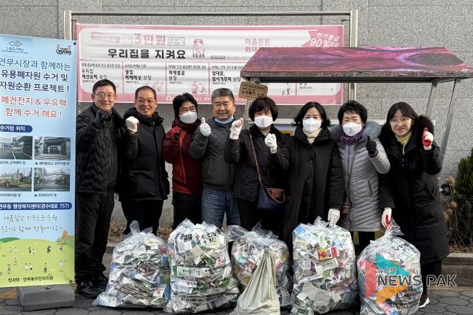 뉴스팍 배상미 기자 | 수원시 장안구 연무동은 지난 6일, 반사모(반딧불이 연무시장 사랑 소모임)와 함께 연무시장 일원에서 유용생활폐자원을 수거했다.