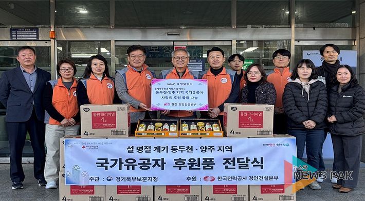 뉴스팍 배상미 기자 | 경기북부보훈지청은 지난 2월 9일, 한국전력공사 경인건설본부와 함께 경기도 동두천·양주시에 거주하는 국가유공자 등 보훈가족 300여 명에게 설 명절 후원품을 전달하고 위문했다고 밝혔다.