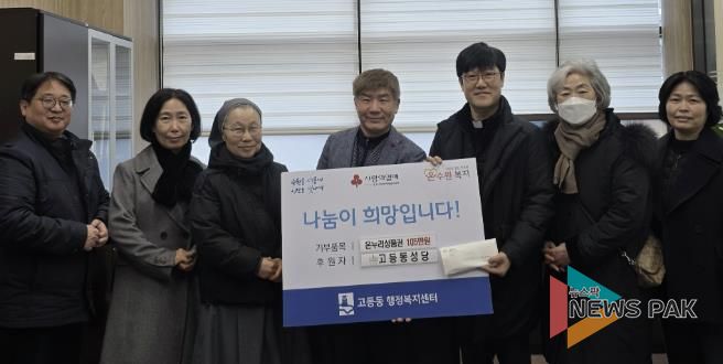 뉴스팍 배상미 기자 | 지난 10일, 수원시 팔달구 고등동에 위치한 고등동성당이 설 명절을 맞이하여 고등동 행정복지센터에 온누리상품권 105만원을 기부하며 지역 내 취약계층을 위한 따뜻한 나눔에 동참했다.