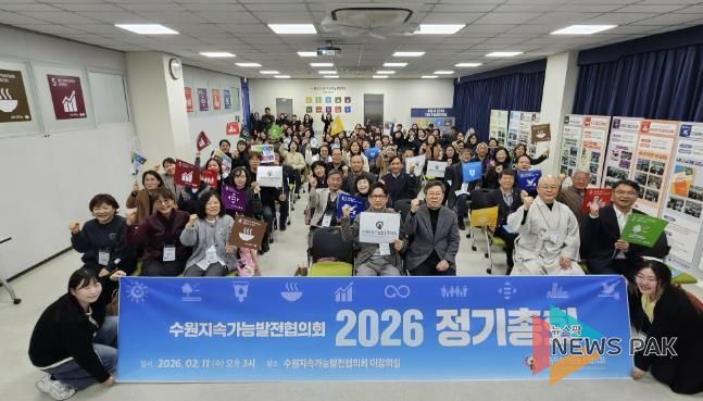 뉴스팍 배상미 기자 | 수원시지속가능발전협의회는 11일 더함파크 대강의실에서 ‘2026년 정기총회’를 열고, 2025년 사업 추진 결과를 공유했다. 또 2026년 사업계획과 예산안을 심의·의결했다.