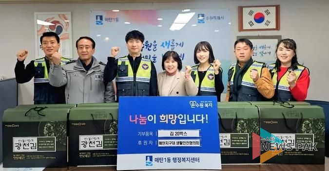 뉴스팍 배상미 기자 | 영통구 매탄1동 행정복지센터는 지난 11일 설 명절을 맞이해 매탄지구대 생활안전협의회가 김 선물세트 20개를 후원했다고 밝혔다. 이번 후원 물품은 관내 저소득 취약계층과 돌봄이 필요한 가정에 전달할 예정이다.