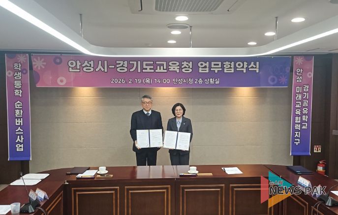 뉴스팍 배상미 기자 | 경기도안성교육지원청은 안성시와 함께 중·고등 학생들의 안전하고 편리한 등·하교를 위해 학생통학 순환버스 사업 추진을 위한 업무협약을 체결했다.