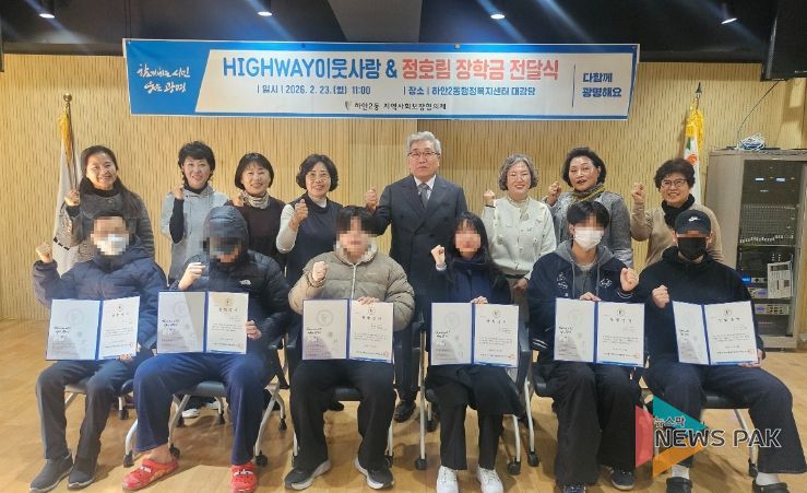 뉴스팍 배상미 기자 | 광명시 하안2동 지역사회보장협의체는 23일 하안2동 행정복지센터 대강당에서 ‘2026년 하이웨이(HIGHWAY) 이웃사랑&정호림 장학생’으로 선발된 대학생 6명에게 총 600만 원의 장학금을 전달했다.