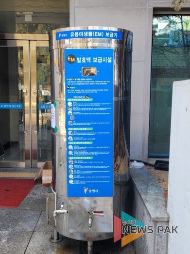 뉴스팍 배상미 기자 | 광명시는 오는 4일부터 악취 저감 및 세제 사용량 절감에 효과가 있는 친환경 유용미생물(EM) 발효액을 시민들에게 무료로 공급한다.