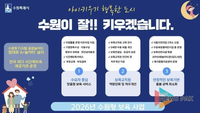 뉴스팍 배상미 기자 | ‘아이 키우기 행복한 도시’를 조성하고 있는 수원특례시(시장 이재준)가 ‘2026년 보육사업 시행계획’을 수립했다.